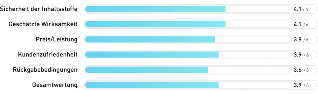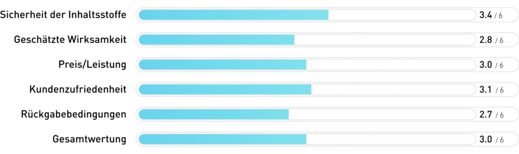 Die Astaxanthin-Kapseln von Vitamaze sind ein einfaches Präparat mit guter Verträglichkeit und einer reinen, veganen Formulierung. Zwar ist der Drei-Monats-Vorrat praktisch, im Vergleich zu spezialisierteren Produkten gibt es jedoch erhebliche Einbußen. So schränken der reduzierte Astaxanthin-Gehalt von 4 mg, die reine Extraktformulierung ohne Pulveranreicherung sowie das Fehlen energiefördernder Verbindungen wie Vitamin B6 und Guarana die Wirksamkeit erheblich ein.