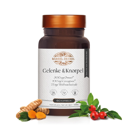 Die Gelenke & Knorpel Kapseln von Bärbel Drexel kombinieren ebenfalls zahlreiche wertvolle Inhaltsstoffe wie Kurkuma, Weihrauch, Kollagen aus Eierschalenmembran und Antioxidantien, die für die Gelenkfunktion essenziell sind.