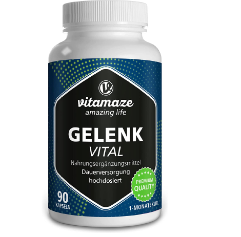 Die Gelenk Vital Kapseln des Herstellers Vitamaze enthalten einige Mikronährstoffe und Antioxidantien wie MSM sowie Hyaluronsäure und Glucosamin, die durchaus sinnvoll für die Gelenkfunktion sind.