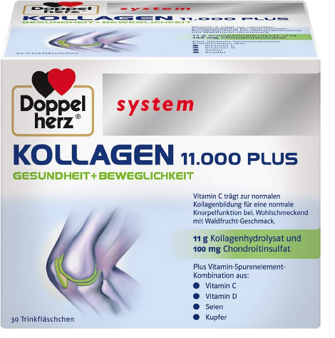 Die Kollagen-Ampullen von Doppelherz mit Waldfruchtgeschmack kombinieren Kollagen mit Vitamin C und weiteren gelenkfreundlichen Inhaltsstoffen. Leider reicht es aber nur für den letzten Platz, da die Nachteile wie niedrige Dosierung, geringe Bioverfügbarkeit und der Zusatz von Zucker und Aspartam, sowie das Hinzufügen von Konservierungsstoffen die gesundheitlichen Benefits überwiegen.