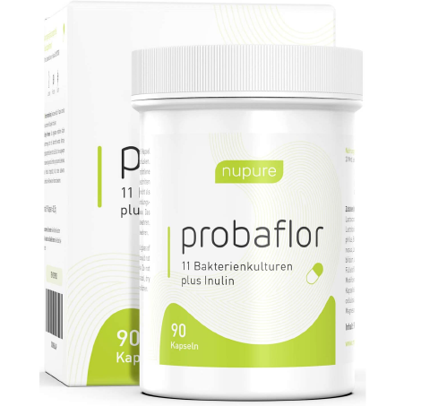 Den zweiten Platz vergeben wir an das Produkt Probaflor von Nupure. Es enthält mit 11 Bakterienstämmen und 20 Mrd. KBE eine deutlich geringere Anzahl an probiotischen Bakterien. Zusätzlich enthält es das Präbiotikum Inulin, das die Verdauung und Darmgesundheit ebenfalls fördert.