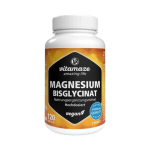 Magnesiumglycinat (auch bekannt als Bisglycinat, sein technischer Name) ist eine hoch bioverfügbare Form von Magnesium, die durch Bindung von Magnesium an die Aminosäure Glycin entsteht. Diese Kombination verbessert die Aufnahme von Magnesium und bietet die beruhigenden Eigenschaften von Glycin, wodurch es besonders wirksam zur Unterstützung von Entspannung und Schlaf ist. Im Gegensatz zu einigen anderen Formen von Magnesium ist Magnesiumglycinat schonend für das Verdauungssystem und es ist weniger wahrscheinlich, dass es Magen-Darm-Beschwerden verursacht.