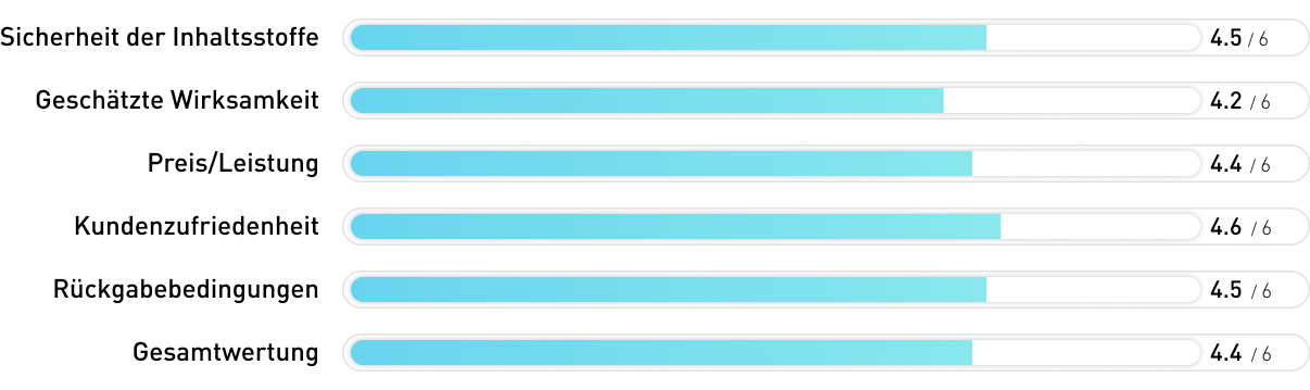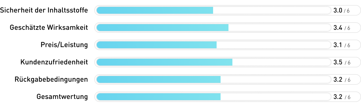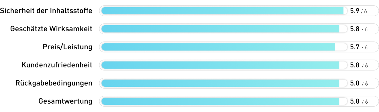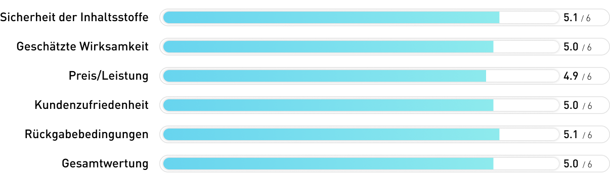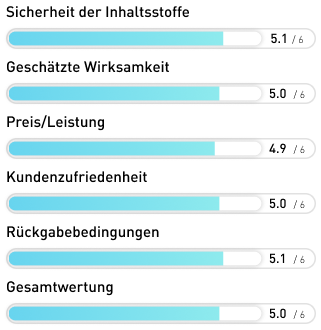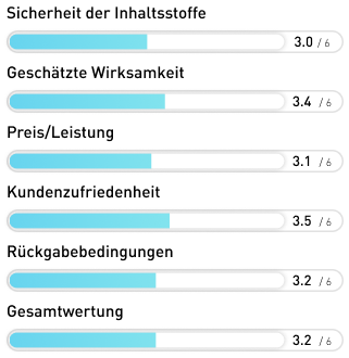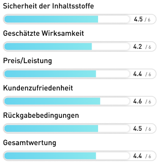 Das Produkt wird als 100% natürlich ausgelobt und die Zertifizierungen und genannten Kontrollen nehmen uns sehr für dieses Produkt ein. Allerdings ist auf der gesamten Seite keinerlei Dosierung der Inhaltsstoffe zu finden. Und so wissen wir wenig Verlässliches darüber, inwiefern das Produkt wirkt und wie der günstige Preis einzuschätzen ist. Das ist sehr schade, denn im Grunde könnte das Produkt auch Anwärter auf Platz 1 gewesen sein.