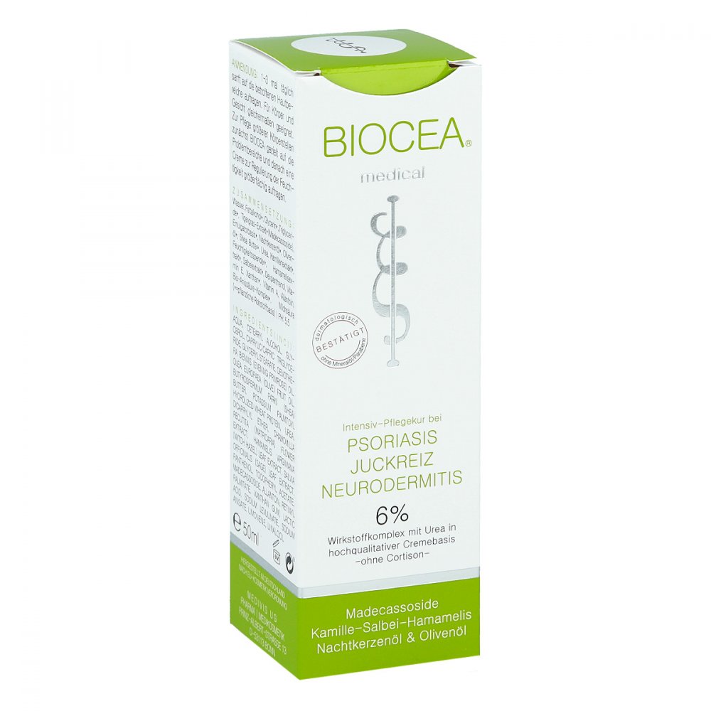 Biocea Psoriasis ist eine speziell für Schuppenflechte entwickelte Creme. Der enthaltene Rohstoff Madecassoside wird aus dem Tigergras gewonnen und gilt als entzündungshemmend und anregend auf die Kollagenproduktion. Obwohl er bereits vielfach in der Kosmetik eingesetzt wird, ist er aber noch eher unerforscht.