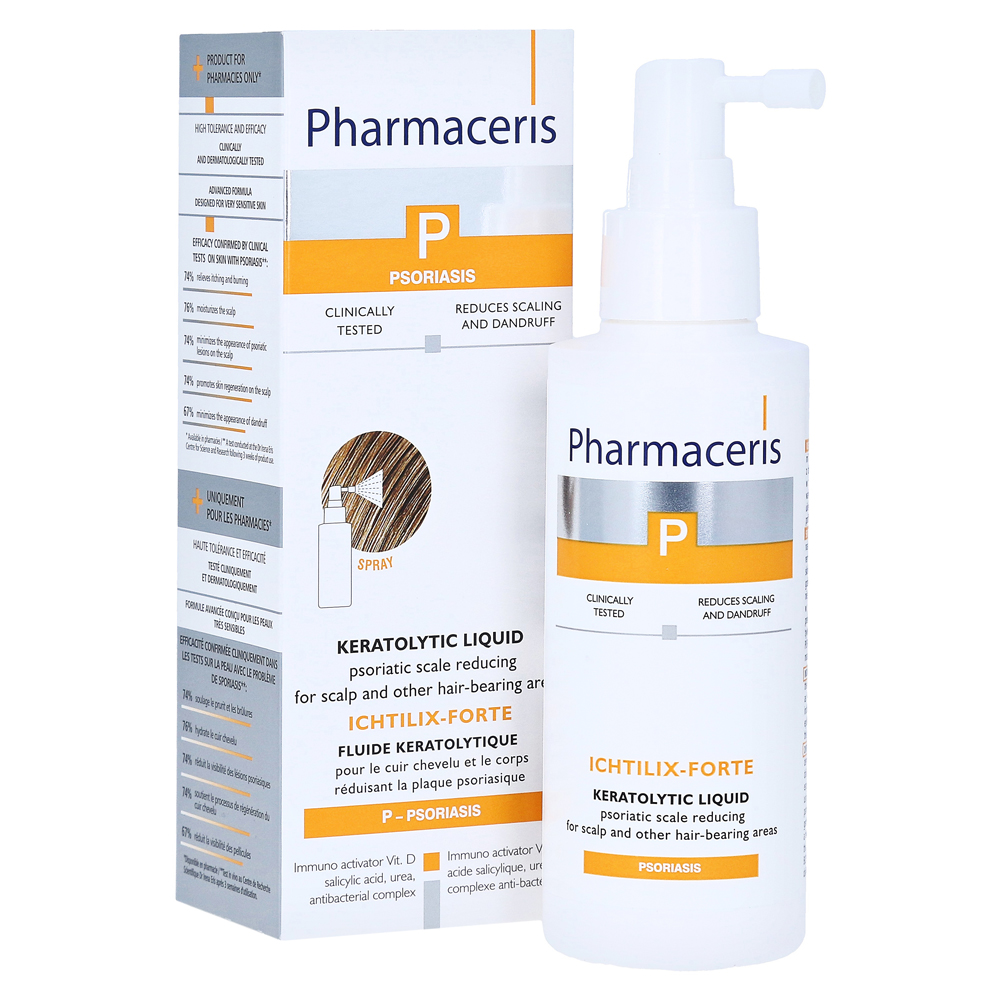 Bei ICHTILIX-FORTE von Pharmaceris handelt es sich um eine Flüssigkeit, die als Spray bequem auf die Haut aufgetragen werden kann. durch einen speziellen Vitamin D Komplex soll die Hautbarriere wiederhergestellt und die Haut weicher gemacht werden.