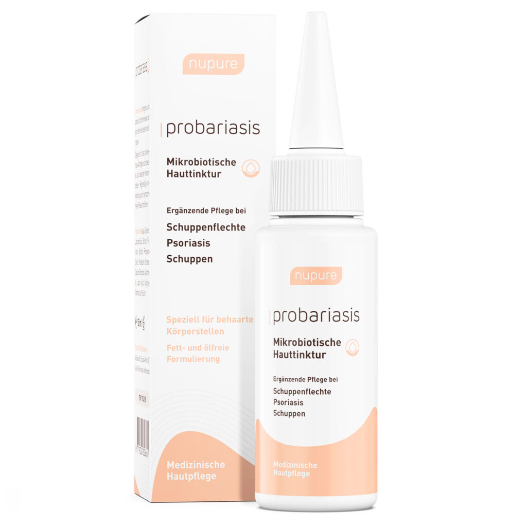 Nupure probariasis ist ein in Deutschland hergestelltes Medizinprodukt. Es handelt sich um eine Hauttinktur, die einfach auf die betroffenen Stellen aufgeträufelt werden kann. Es wird besonders von Dermatologen gerne empfohlen, um schuppige und gereizte Stellen bei Schuppenflechte zu behandeln.
