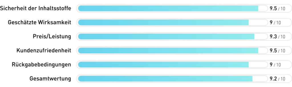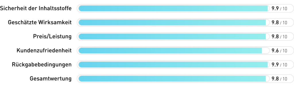 Wir haben alle getesteten Produkte detailliert verglichen und anhand von Testkriterien bewertet. Dafür haben wir ein innovatives Bewertungssystem genutzt, das neben den oben vorgestellten Aspekten weitere Punkte wie ein faires Preis-Leistungs-Verhältnis und eine unkomplizierte Einnahme berücksichtigt.