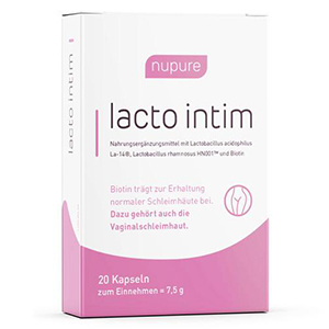 Nupure lacto intim ist ein probiotisches Präparat mit Milchsäurebakterien zur Unterstützung der Vaginalflora. Es wird von Ärzt*innen unter anderem bei häufigen Pilzinfektionen und bakterieller Vaginose verschrieben.